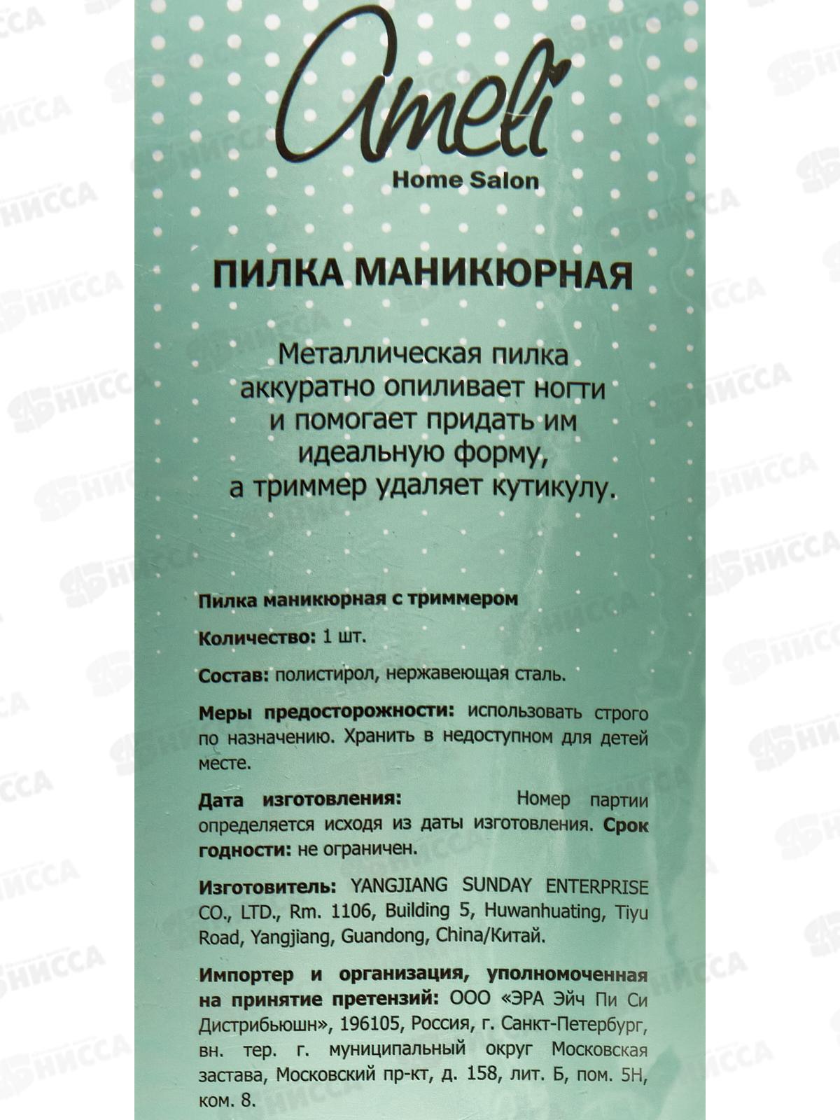 Ameli Пилка для ногтей металл с пластик ручкой с триммером S3922 3106 *2
