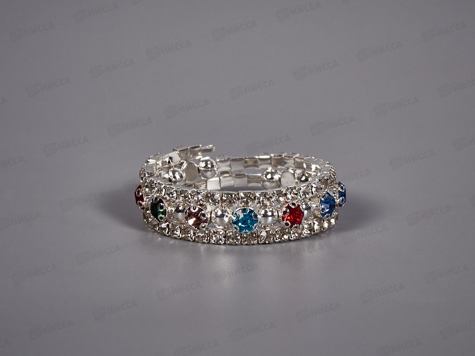 Браслет-спираль 3ряда цветн.стразы,жемчуг №1638