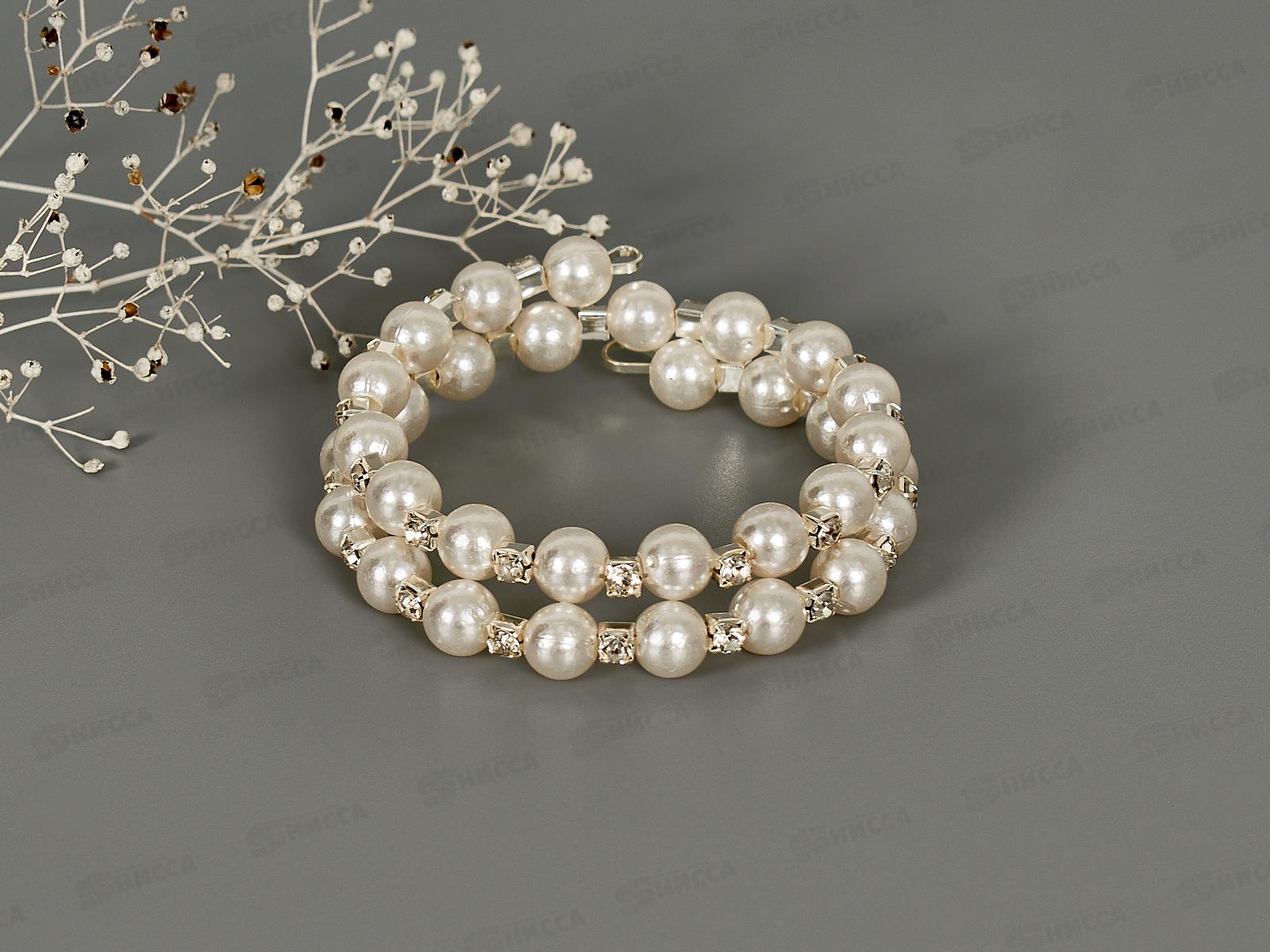 Браслет-спираль 2 ряда жемчуг стразы №314