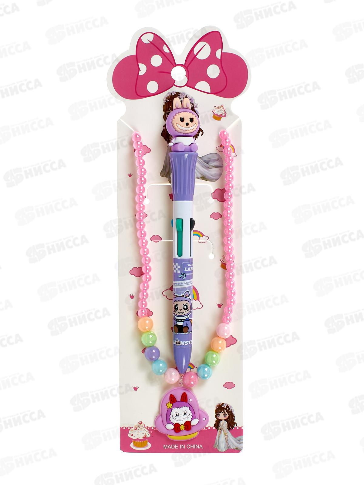 Набор бижут детский бусы+авторучка "LABUBU" 4цв №2397