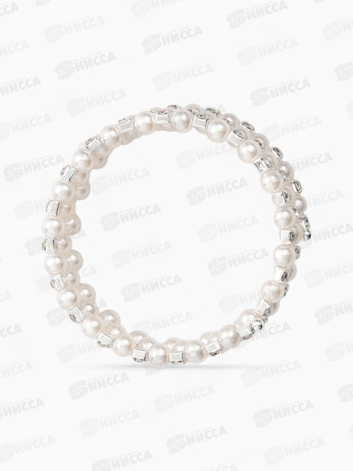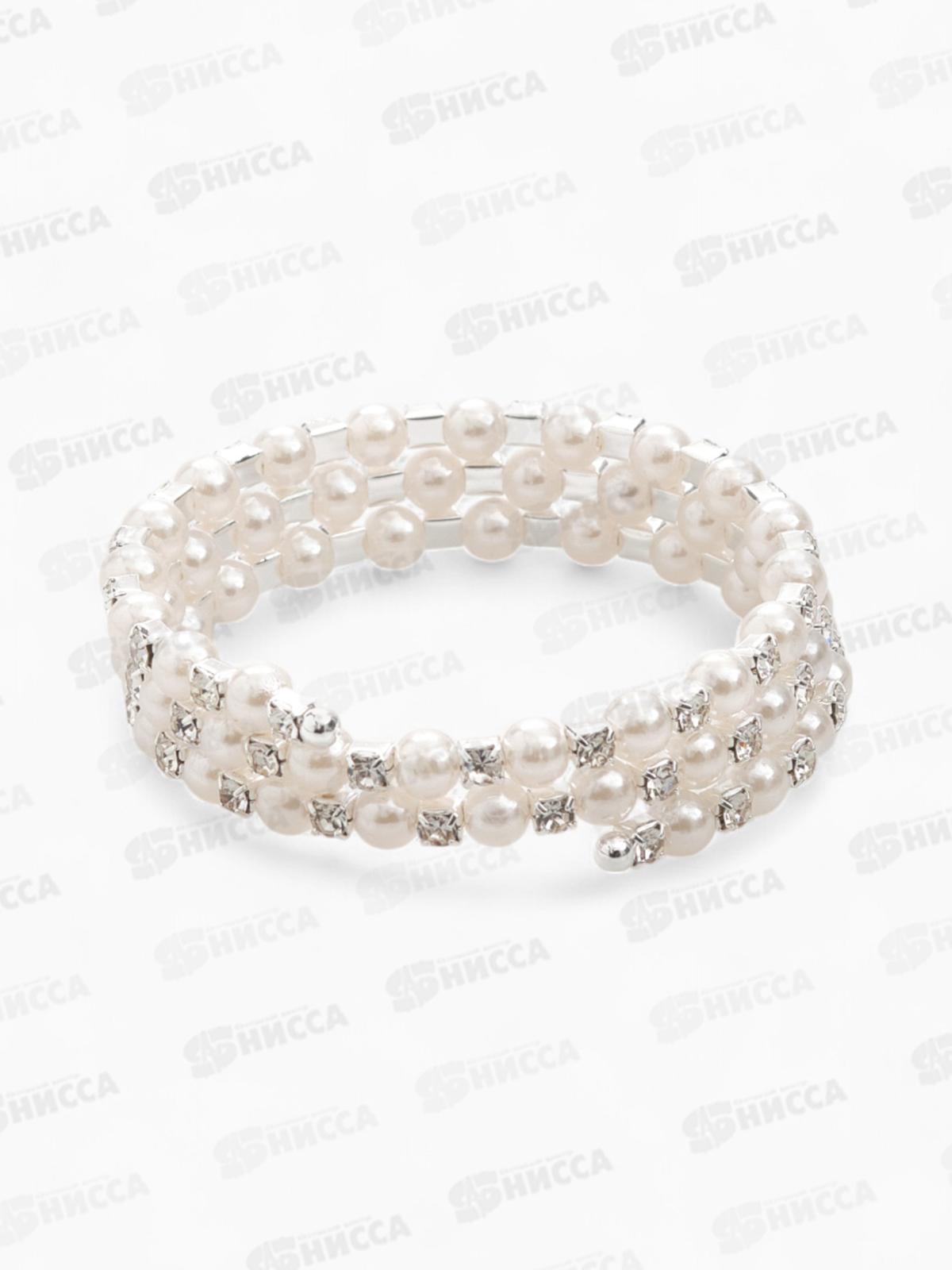 Браслет с жемчугом "Пружинка" стразинки, белый в серебре 6см, 10897281