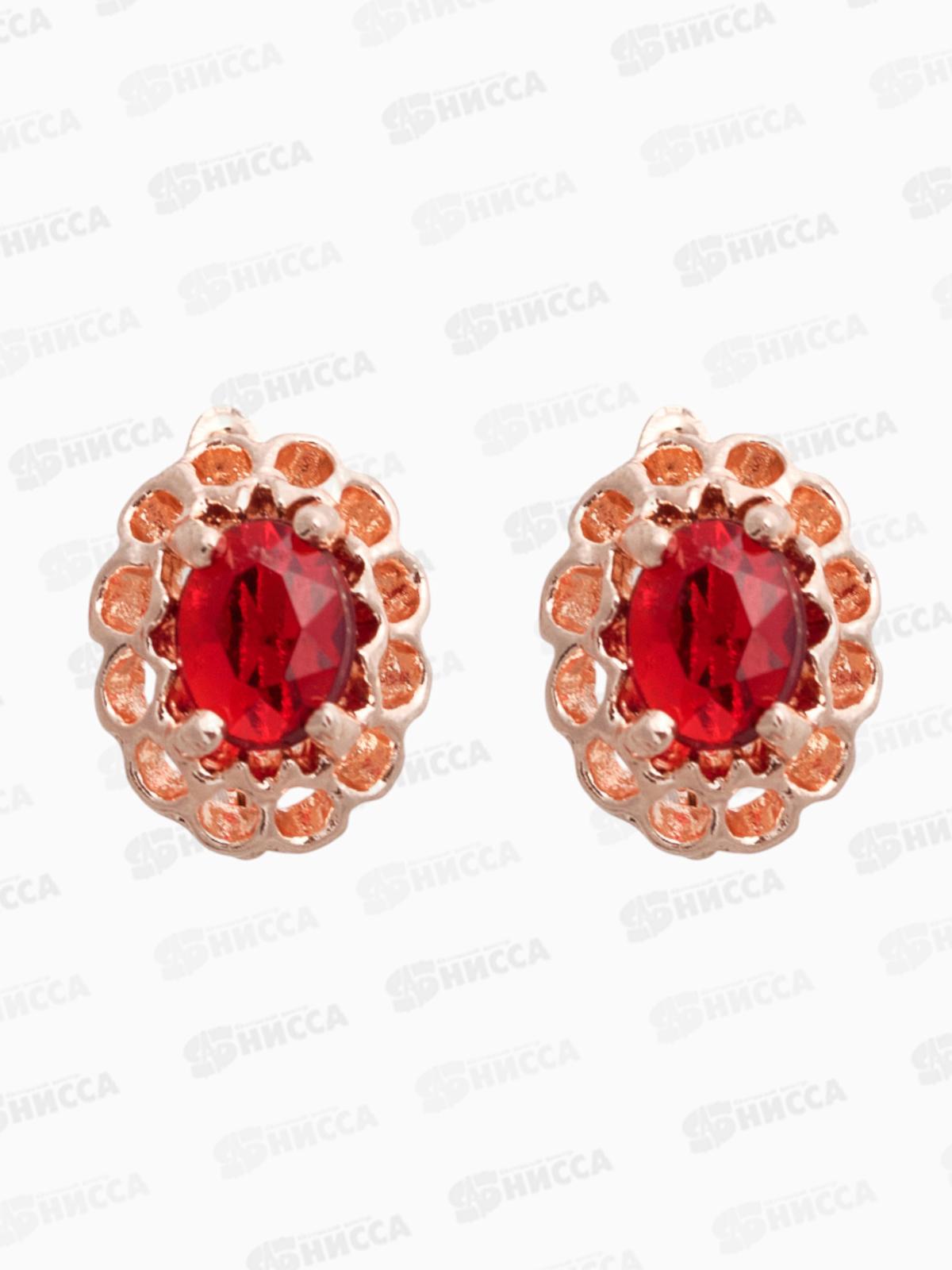 Серьги со стразами "Эдель" овал в ажуре,красный в золоте 1260987