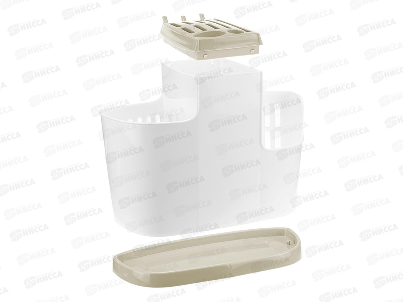 Органайзер позволяет компактно разложить кухонные приборы и аксессуары для сушки. Имеет два отделения разной высоты для столовых приборов, отверстия для сушки ножей, лопаток, поварёшек, а также крючки для сушки ситечка, ножа для овощей и другой кухонной утвари. Поддон и крышка закреплены на защёлки, но легко снимаются для мытья. Прочный, практичный и вместительный аксессуар для кухни прослужит хозяйке многие годы.