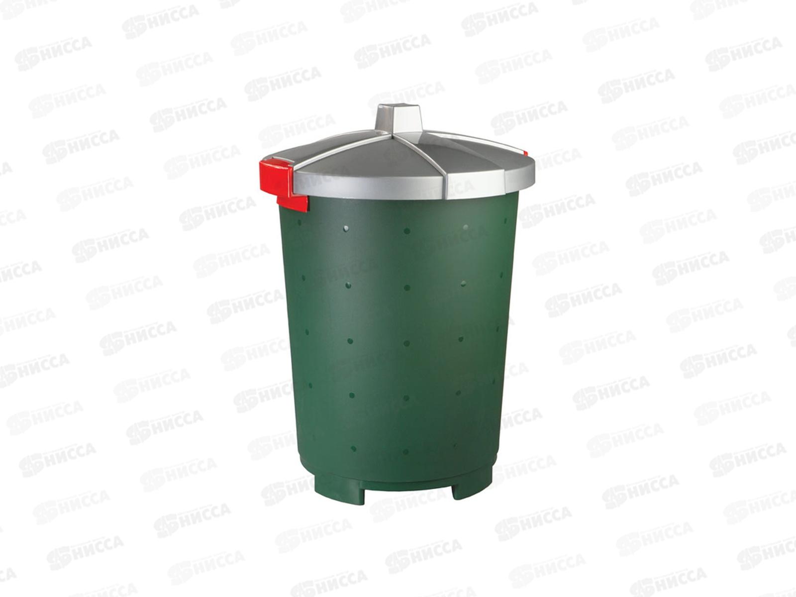 Прочный пластиковый бак объемом 45 литров может использоваться как в помещениях, так и на улице. Благодаря застежкам крышка надежно держится на изделии.