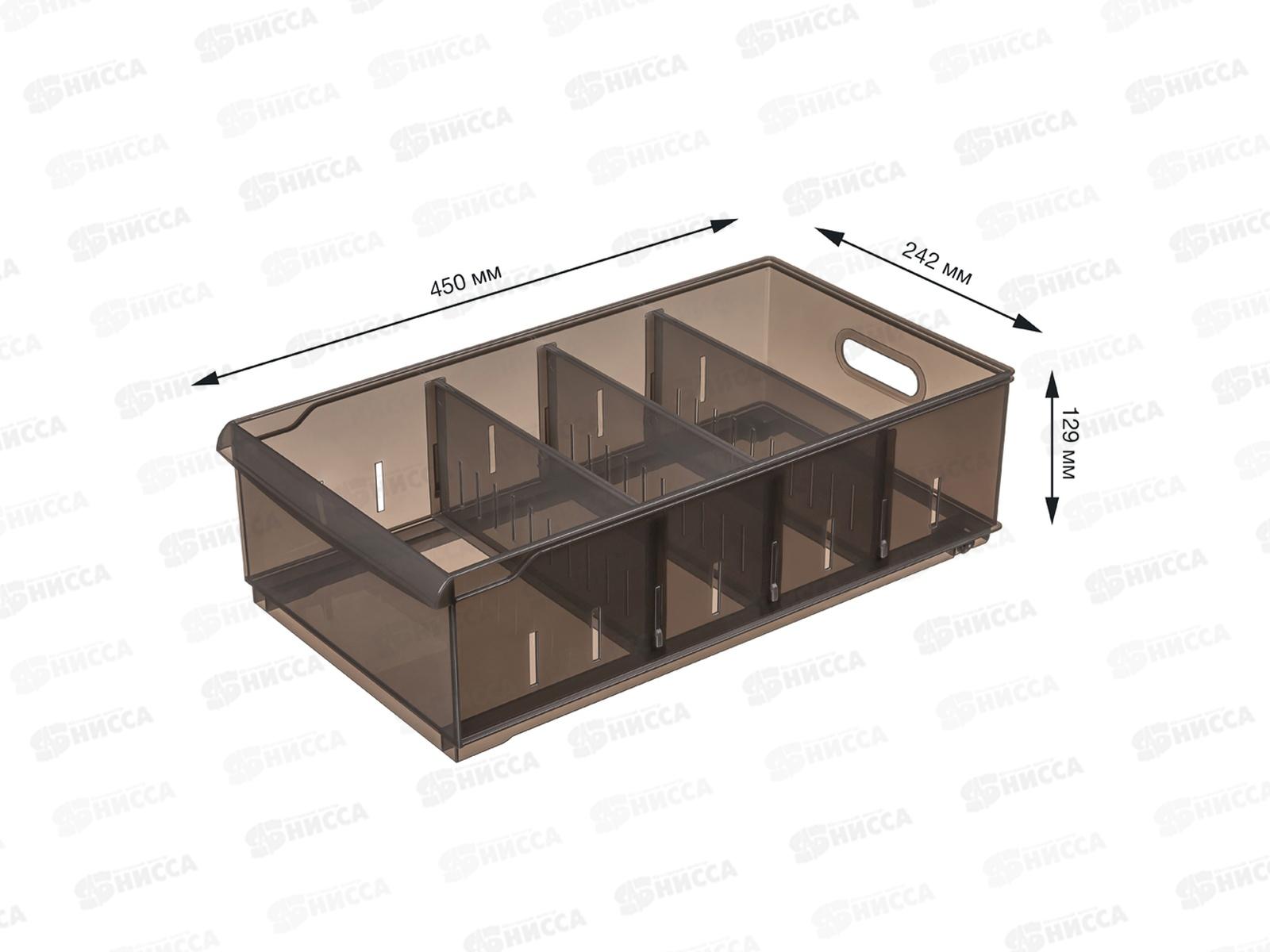Контейнер универсальный OPTIMA от Econova с роликами подойдёт для хранения различных предметов (химии, кухонных предметов, инструментов, игрушек и пр.). С помощью нескольких перегородок, которые идут в комплекте, и специальных пазов можно менять размер отделений контейнера по необходимости, приспособив как для мелочей, так и для крупных предметов. Надёжные ролики и ручка в верхней части ящика позволяют легко выдвигать его. Прозрачные стенки позволяют видеть, что хранится внутри каждого из контейнеров.