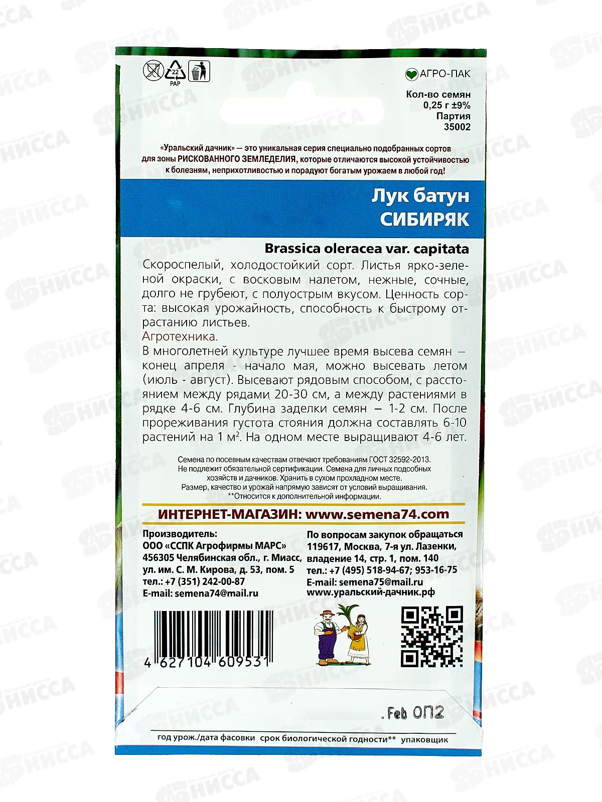 Лук батун Сибиряк Евро *10 УрД +