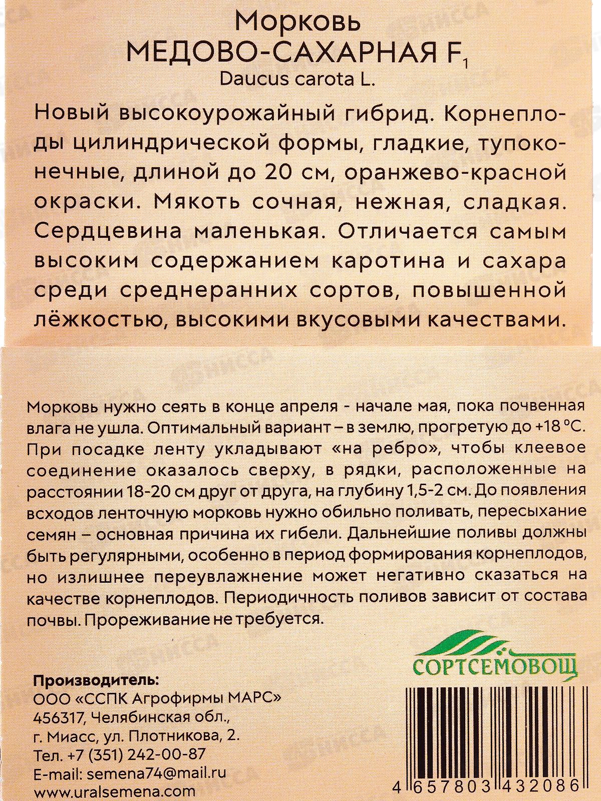 Морковь Медово-сахарная F1 лента 8м *10 УрД +
