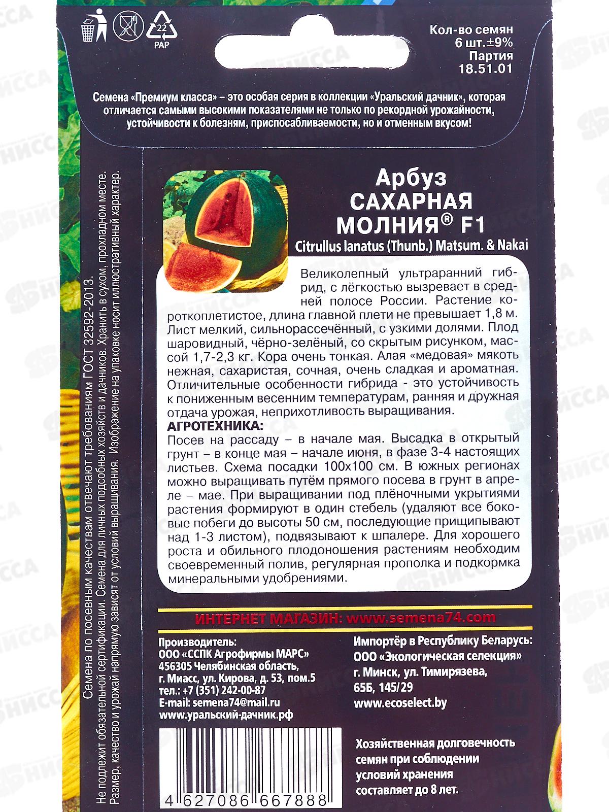 Арбуз Сахарная молния F1 Евро *10 УрД +
