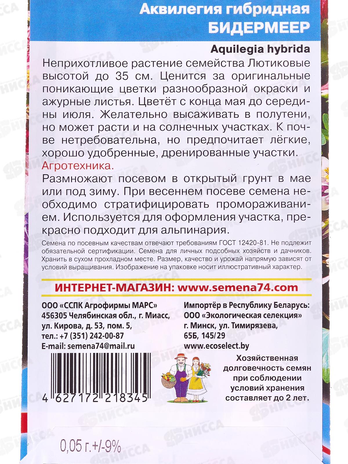Аквилегия Бидермеер гибридная Евро *20 УрД +