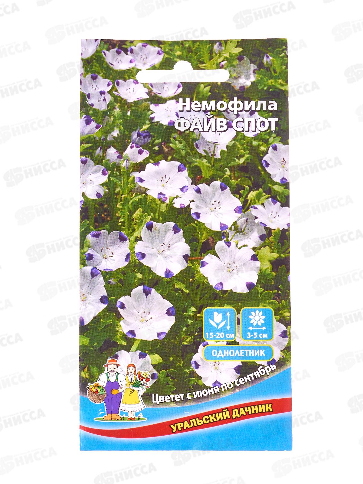 Необыкновенное декоративное низкорослое растение высотой 15–20 см. Миниатюрные кустики этого обильно цветущего, сильноветвящегося однолетника образуют сплошной ковёр. Листья перисто-лопастные, опушённые. Стебли опушённые, полустелющиеся, покрыты оригинальной окраски цветками диаметром 3–5 см. Цветки белые, ширококолокольчатые, с ярким синим пятном на конце каждого лепестка, расположены в листовых пазухах. Немофила эффектна вблизи водоёмов, легко комбинируется с другими растениями и прекрасно смотрится в бордюрах, альпийских горках, вдоль дорожек. При посадке в контейнеры или висячие корзины образует плотный каскад зелени и цветков, который великолепен на переднем плане композиции. При выращивании рассады посевы проводят в апреле в ящики. Глубина заделки семян 0,3 см. При температуре +20–22 °C всходы появляются на 10–14 день. Сеянцы содержат при умеренной температуре. В открытый грунт рассаду высаживают в мае, выдерживая расстояние между растениями 15 см. Можно сеять в открытый грунт непосредственно на место в мае–июне.