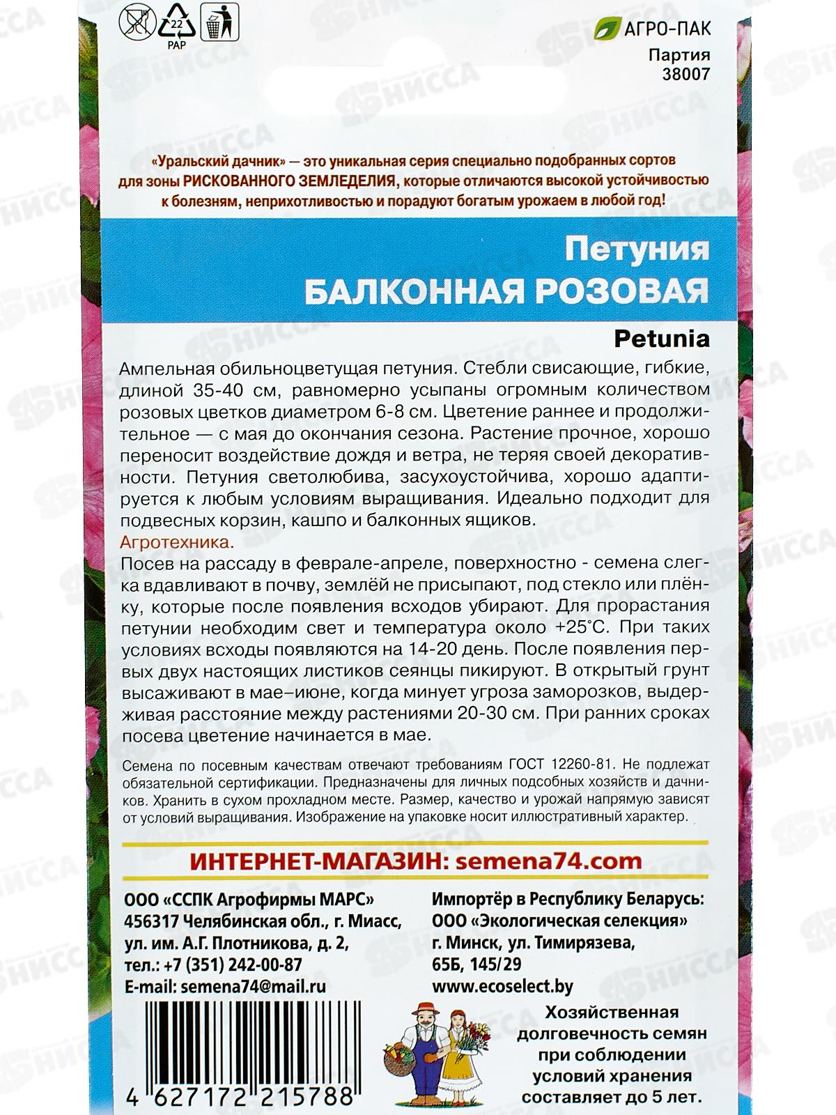Петуния Балконная розовая Евро *10 УрД +