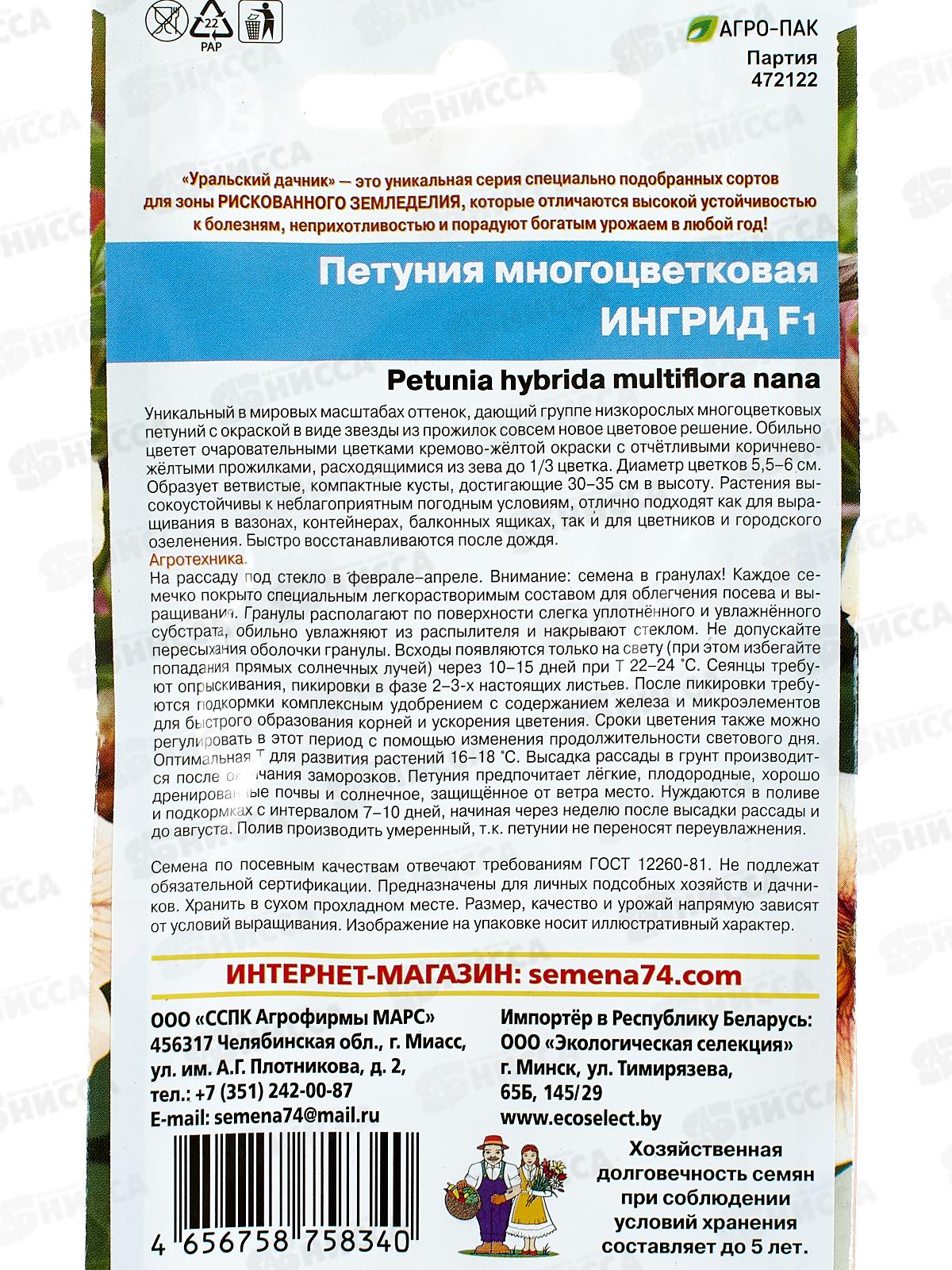 Петуния Ингрид F1 Евро многоцветковая *10 УрД +