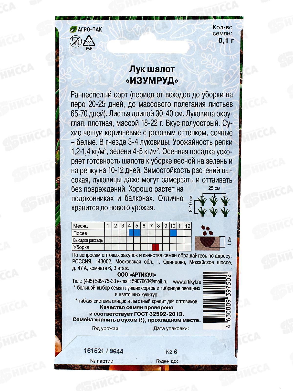 Лук шалот Изумруд 0,1г цв/п *10 АРТ +