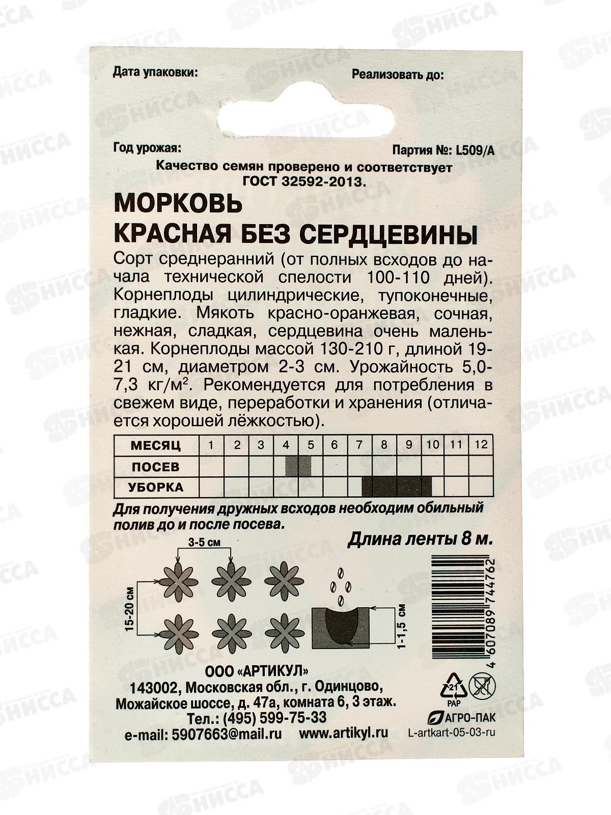 Сорт среднеранний (от полных всходов до начала технической спелости 100-110 дней). Корнеплоды цилиндрические, тупоконечные, гладкие. Мякоть красно-оранжевая, сочная, нежная, сладкая, сердцевина очень маленькая. Корнеплоды массой 130-210 г, длиной 19-21 см, диаметром 2-3 см. Урожайность – 5,0-7,3 кг/м2. Рекомендуется для потребления в свежем виде, переработки и хранения (отличается хорошей лёжкостью). Содержит каротин, витамины В1, В2, Р. Морковный сок является лечебным средством.