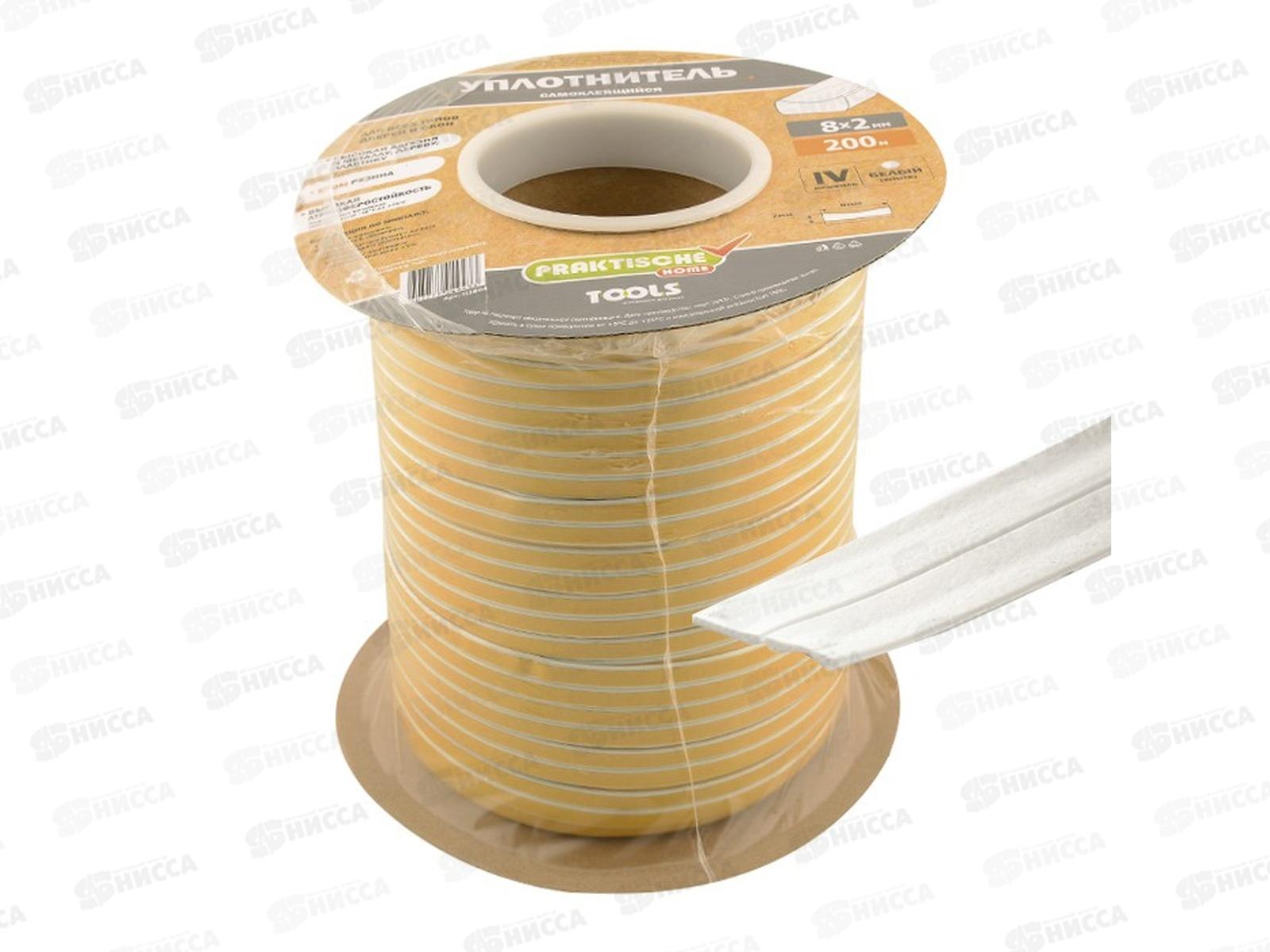 Уплотнитель самоклеящийся PRAKTISCHE 8х2мм IV-200м (белый), Ц1894
