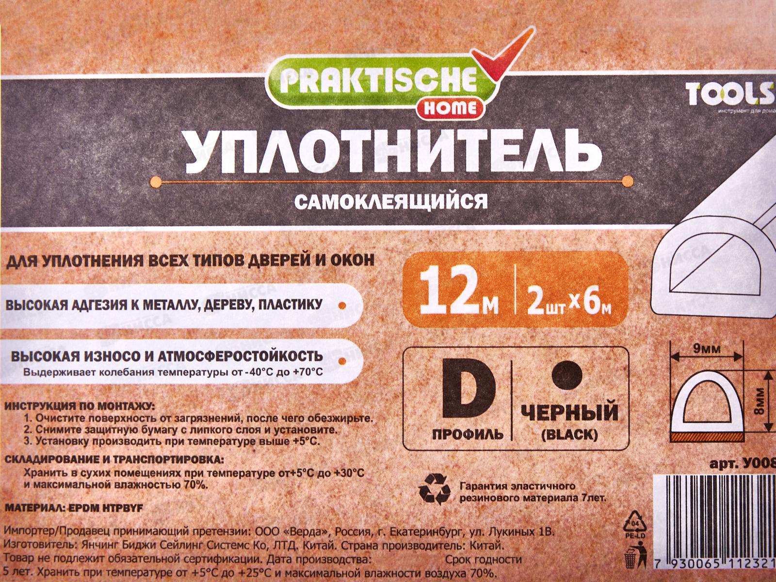 Уплотнитель самоклеящийся PRAKTISCHE 9х8мм D- 12м (черный) У0087