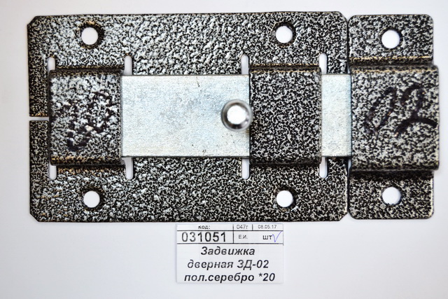 Задвижка дверная ЗД-02, полимерное покрытие, цвет серебро используется для монтажа на двери деревянные, металлические и служит для закрывания двери изнутри.