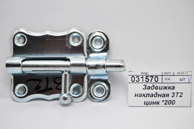 Оцинкованная накладная задвижка на дверь ЗТ2 — один из самых надёжных защитников вашей безопасности, ведь, в отличие от обычных средств защиты, к ней нет доступа с наружной стороны. Используйте её вместе с другими замками для обеспечения максимальной сохранности вашего имущества. Эта модель подходит для дверей жилых, складских и подсобных помещений. Высокое качество всех соединений обеспечивает плавное открытие и закрытие засова.