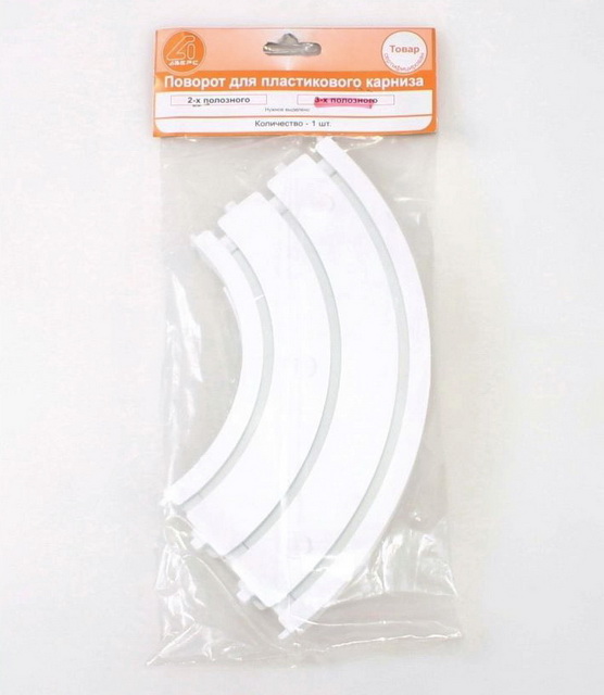 Соединитель поворотный, трехполозный, является готовым решением для карнизов с пластиковой шиной. Это поворотный элемент, который позволяет создать пластиковую шину с круглыми боковинами или эркером.