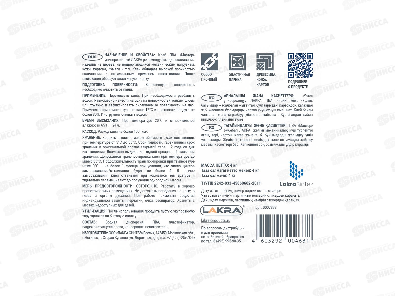 Клей ПВА универсальный Мастер 4кг Л-С *4/144 1049 ЛАКРА СРОК ДО 06.26
