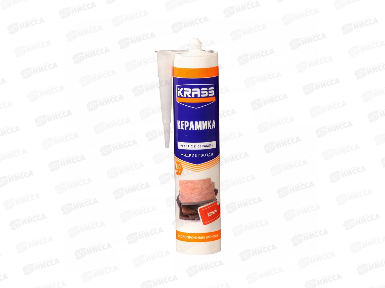 Клей KRASS Жидкие гвозди для пластика и плитки Особопрочный монтаж (Керамика) Белый 300мл, 8307630 *12/1152