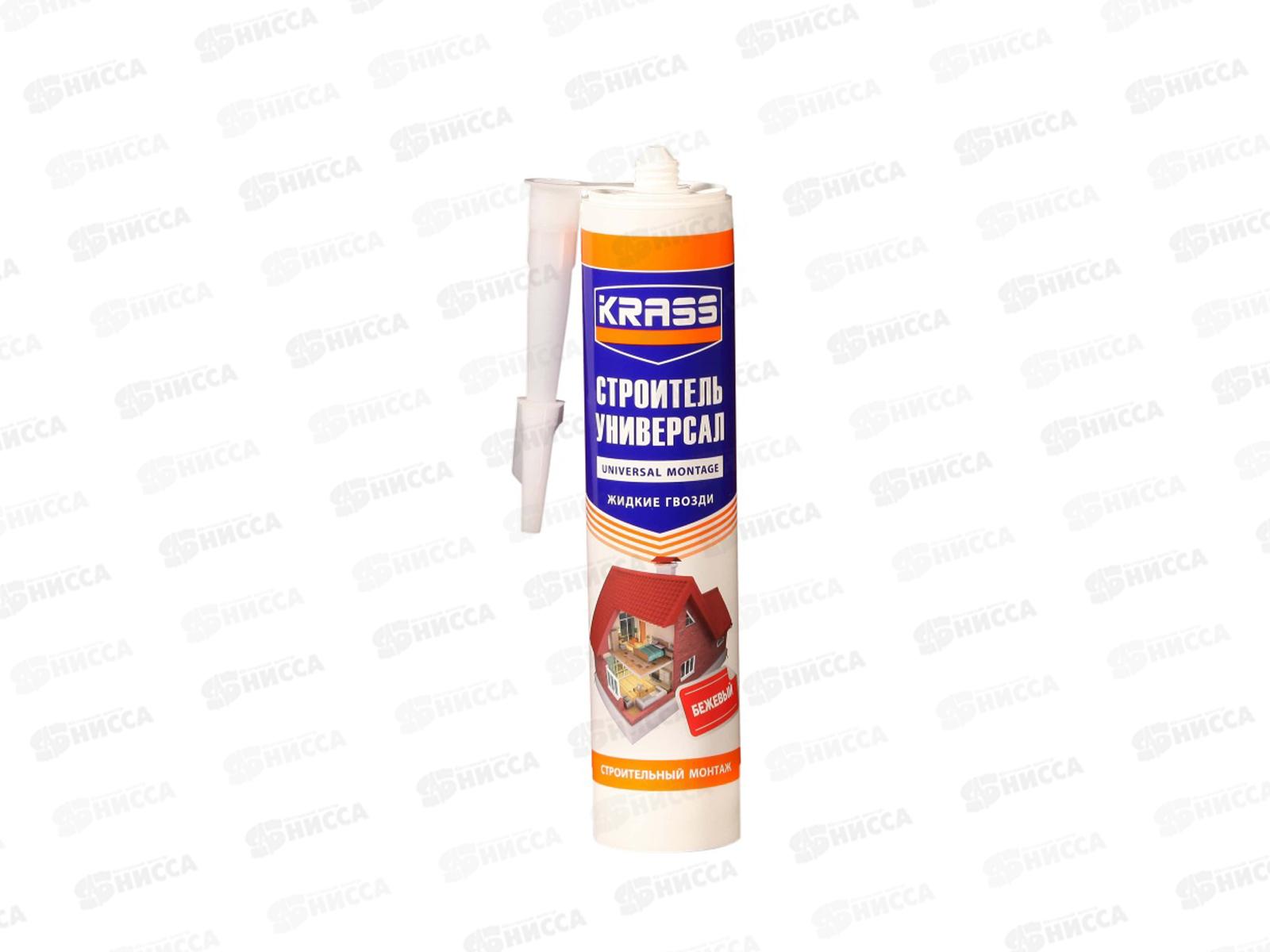 Клей KRASS Жидкие гвозди универсальные Строительный монтаж (Строитель Универсал) Белый 300мл, 8310719 *12