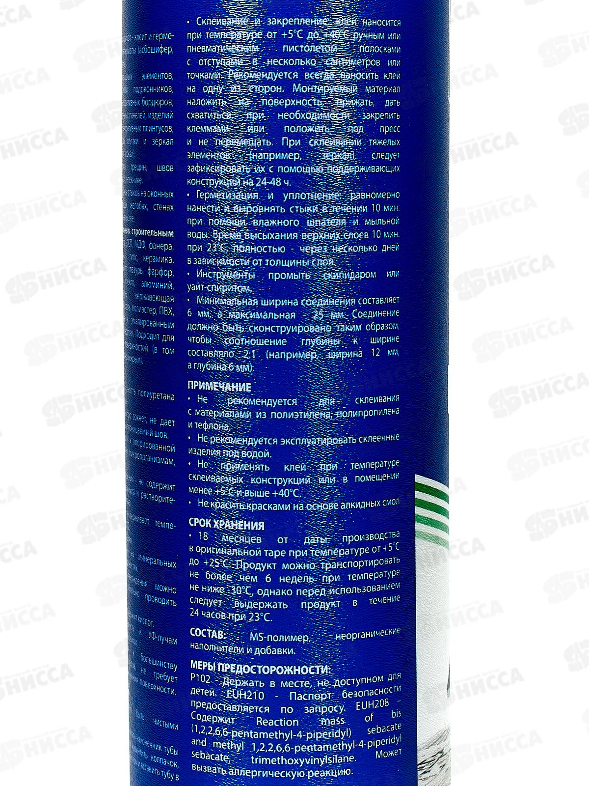 Применяется для приклеивания и герметизации материалов при отделке фасадов зданий, монтажа, герметизации и уплотнения трещин, стыков, швов во влажных помещениях. Клей-герметик сочетает в себе прочность полиуретана и эластичность силикона. Устойчив к хлорированной и морской воде, плесени, микроорганизмам, грибам. Устойчив к УФ-лучам и атмосферным воздействиям. Не содержит кислот, не образует пятен на минеральных и металлических поверхностях. Без растворителей, почти не имеет запаха.