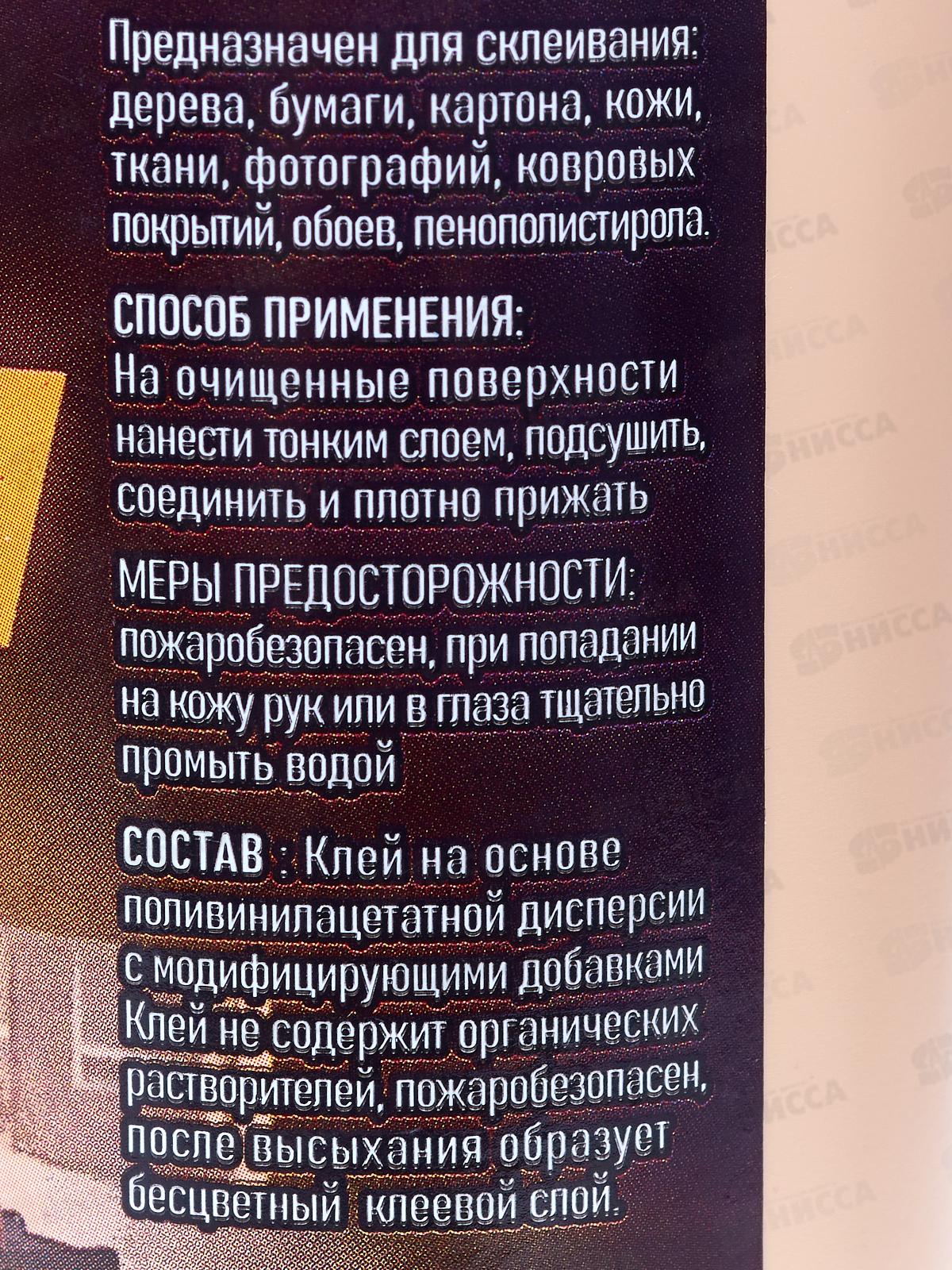 Состав: клей на основе поливинилацетатной дисперсии с модифицирующими добавками