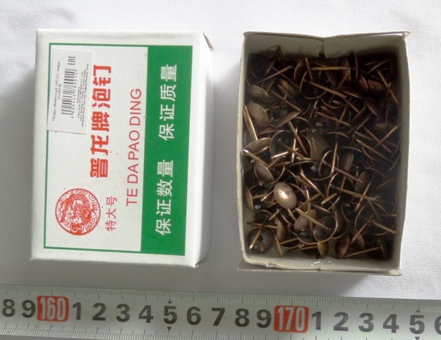 Гвоздь декорированный используется для крепления обивки при изготовлении мебели и ремонтно-восстановительных работах, для украшения элементов интерьера, при создании DIY-поделок.