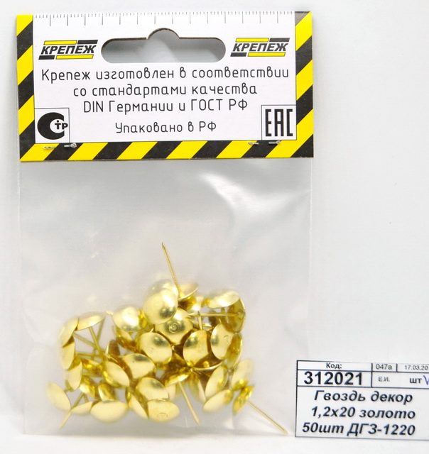 Гвоздь декоративный 1,2х20 золото 50штук ДГЗ-1220 *100 ш