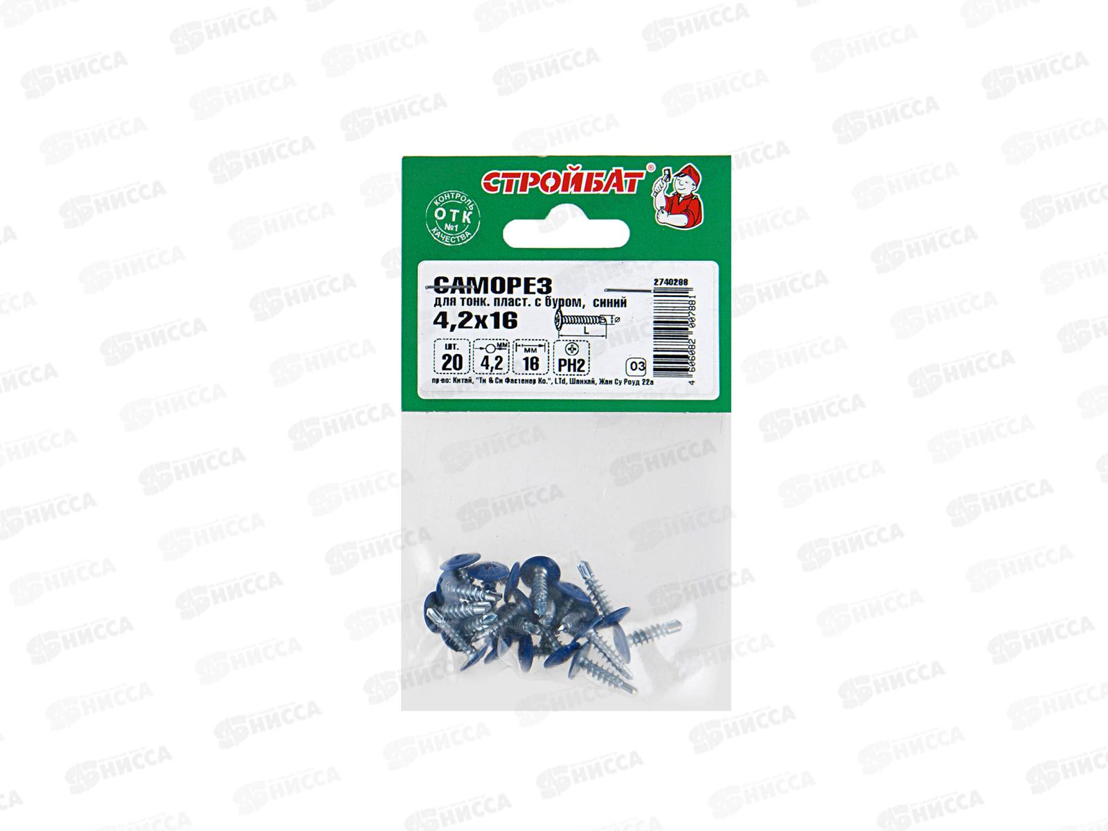 Саморез СММ для тонких пластин с буром 4,2x16 (синий/белый цинк 20шт) *50
