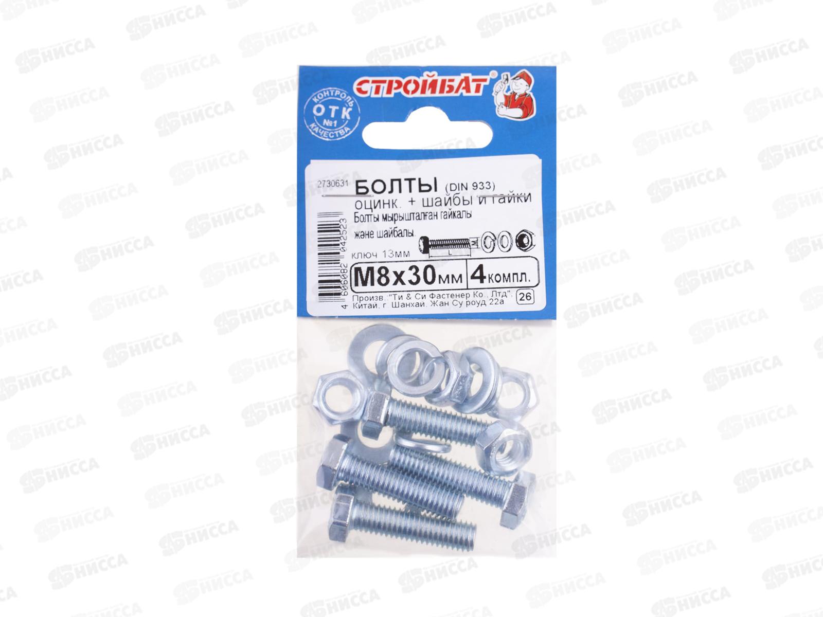 Болты DIN 933 М 8x 30 с гайками и шайбами (белый цинк 4шт) *30