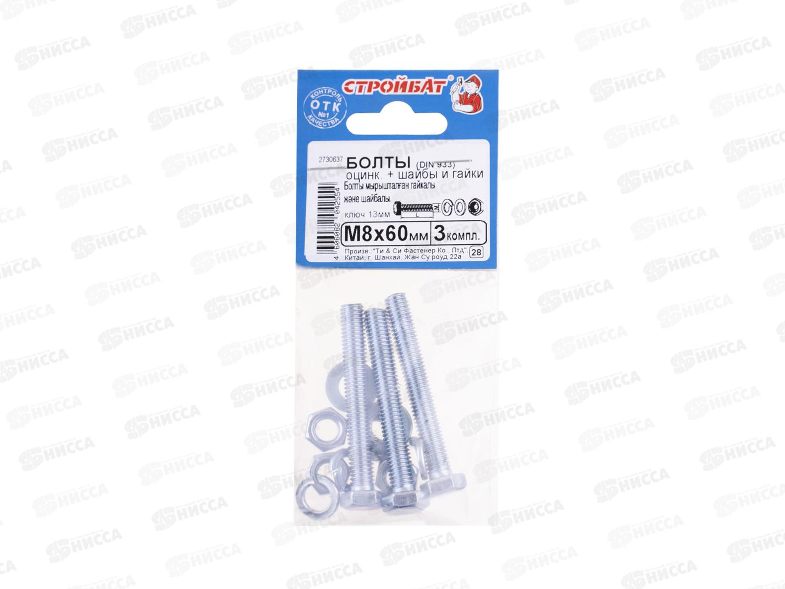 • Болты DIN 933 М 8x 60 с гайками и шайбами (белый цинк 3шт)  *30