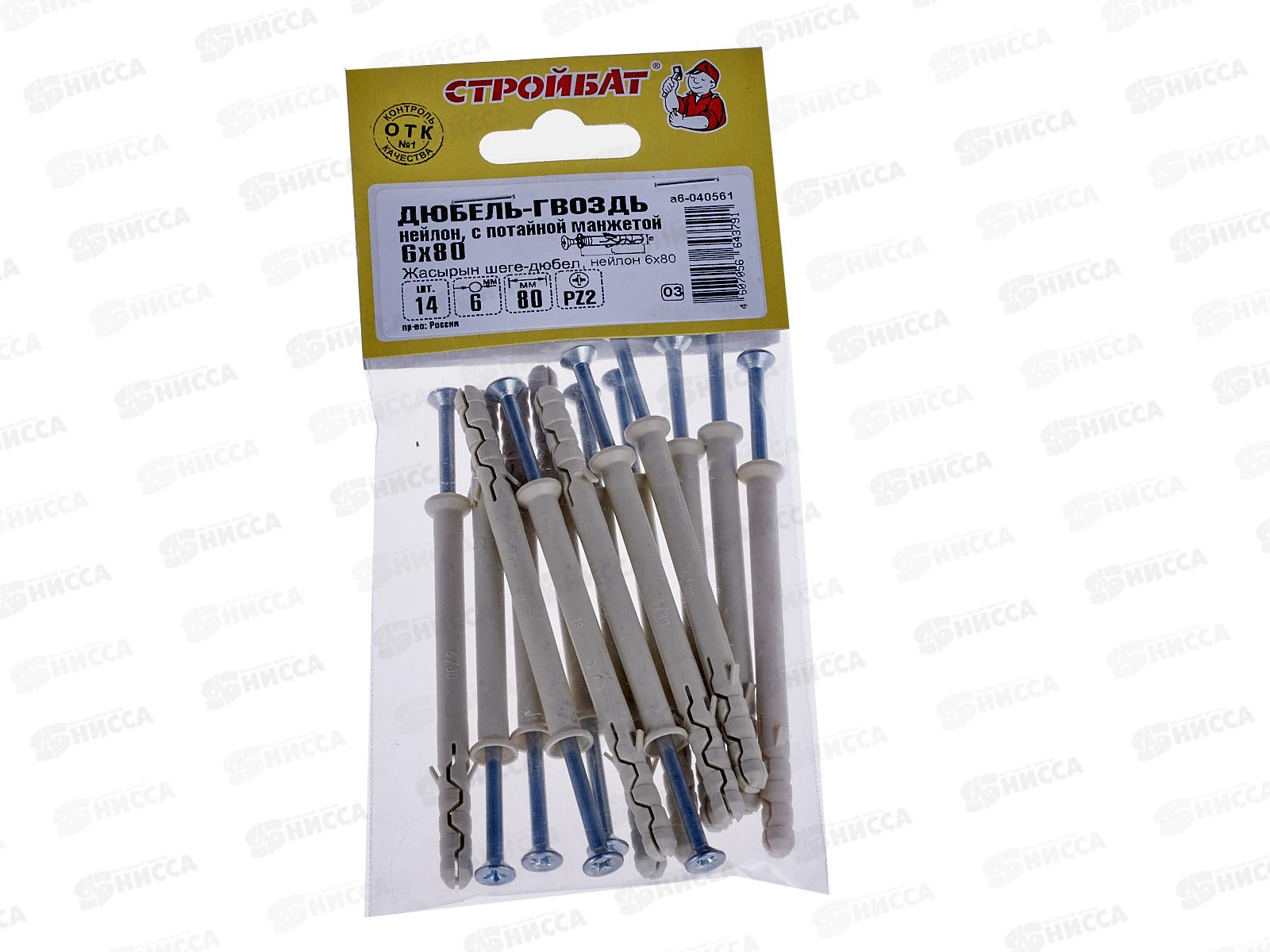 Дюбель-гвоздь нейлон потайной манжет 6x80мм (14 шт), 040561
