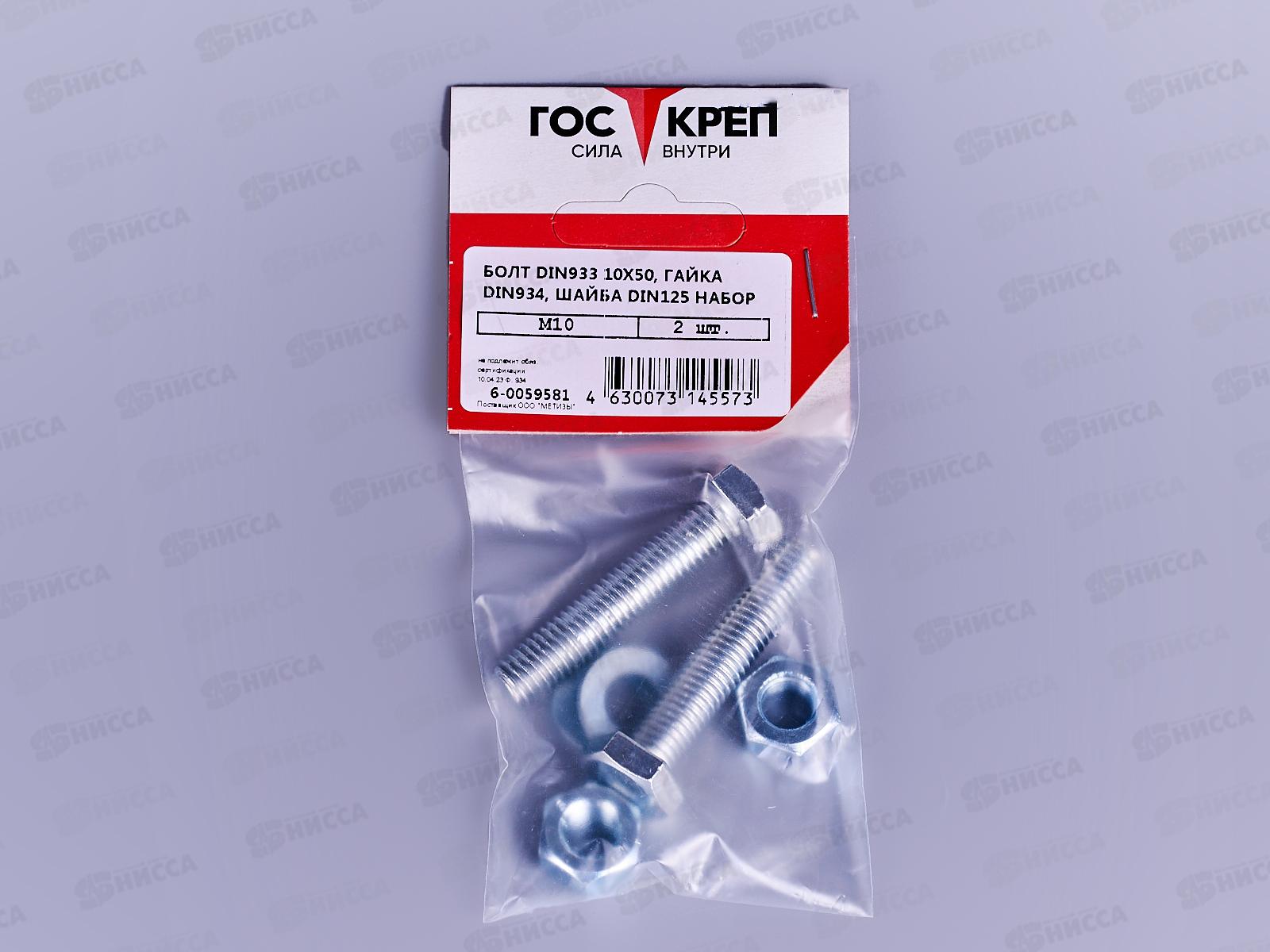 Болт DIN 933 М10x50 гайка+шайба (цинк 2шт) ГОСКРЕП-подвес (тк=10)