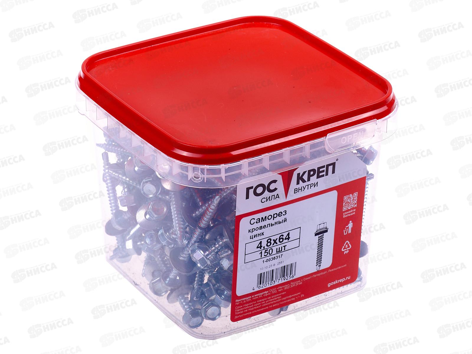 Саморез кровельный 4,8*64 (150шт) цинк, ГОСКРЕП контейнер