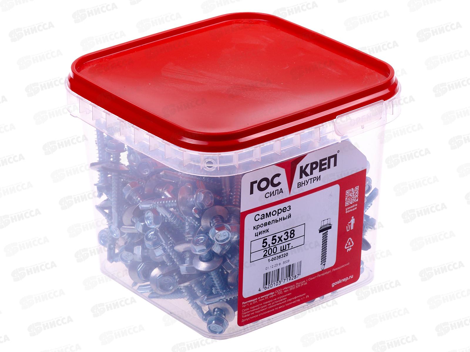 Саморез кровельный 5,5*38 (200шт) цинк, ГОСКРЕП контейнер *6