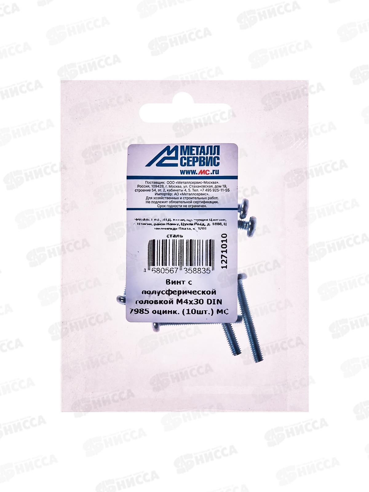 Винт с полусферической головкой M4x30 DIN7985 оцинк. (10шт) *10