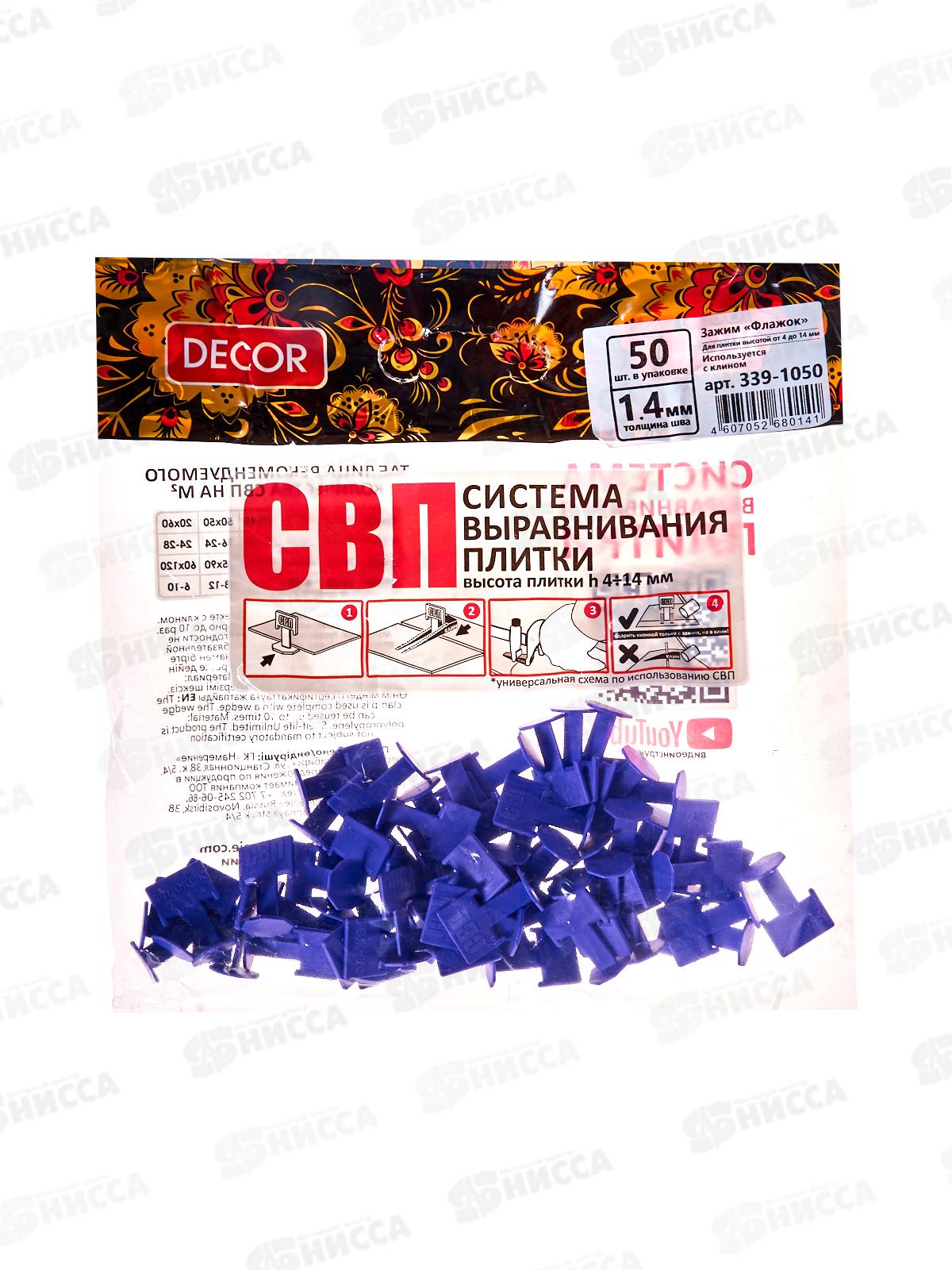 Зажим "Флажок" СВП DECOR 339-1050 применяется в комплекте с клином DECOR при укладке керамической плитки и керамогранита толщиной 4-14 мм. Предназначен для выравнивания поверхности по плоскости. Благодаря применению данных зажимов получается ровный шов 1.4 мм.