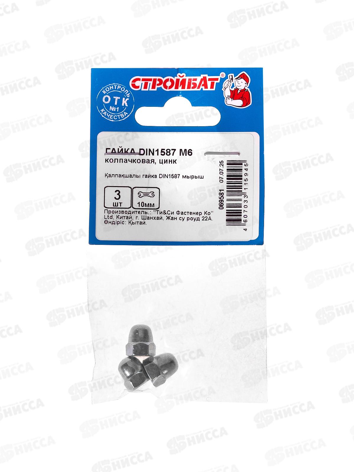 Гайка колпачковая М 6 DIN1587 (белый цинк 3шт)