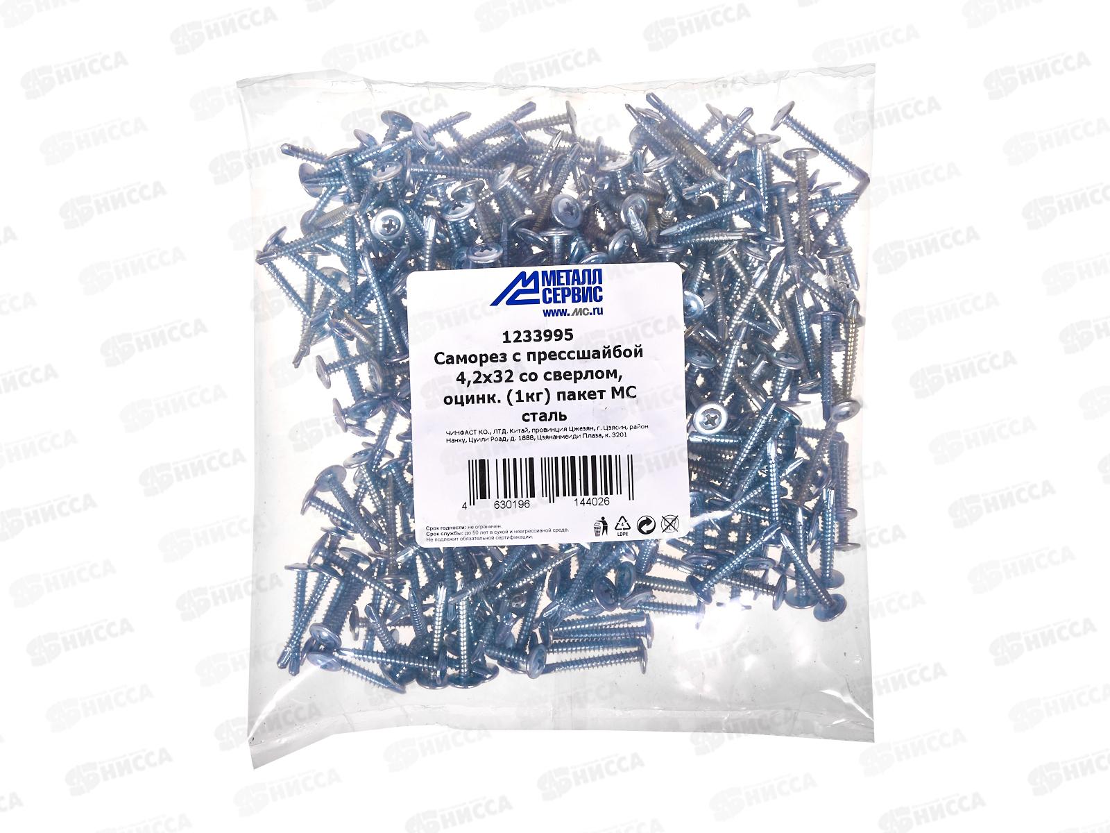 Саморез с прессшайбой 4.2*32 (1кг) со сверлом, пакет *10