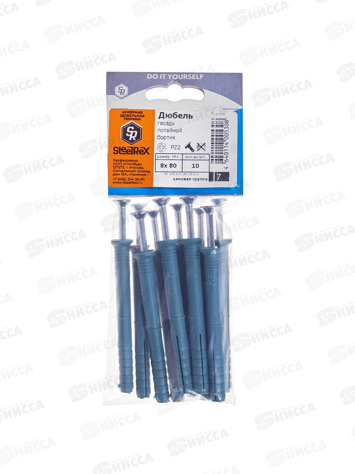 Дюбель-гвоздь, потайной бортик РОССИЯ 8*80 10шт SR
