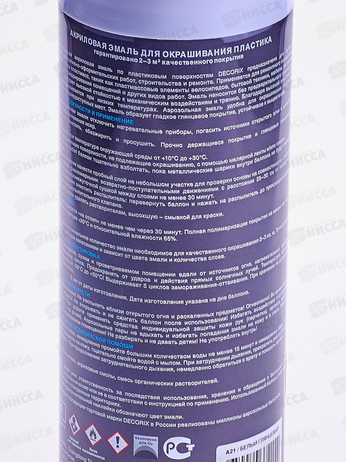 Аэрозольная эмаль по пластику DECORIX, 520мл, белый глянцевый *12