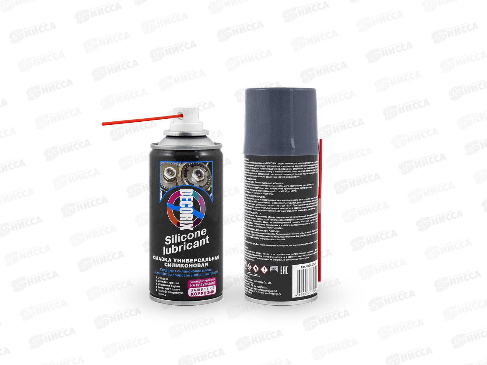 Универсальная силиконовая смазка DECORIX предназначена для защиты от коррозии и смазывания различных механизмов, резиновых уплотнителей и молдингов, дверей багажника и капота, дверных замков и петель, а также для предотвращения примерзания, старения и растрескивания. Устраняет скрип и снижает трение, вытесняет влагу с металлических поверхностей, облегчает разъединение приржавевших резьбовых соединений, оставляет защитную плёнку против коррозии. Идеально подходит для смазки и консервации различных частей и механизмов.