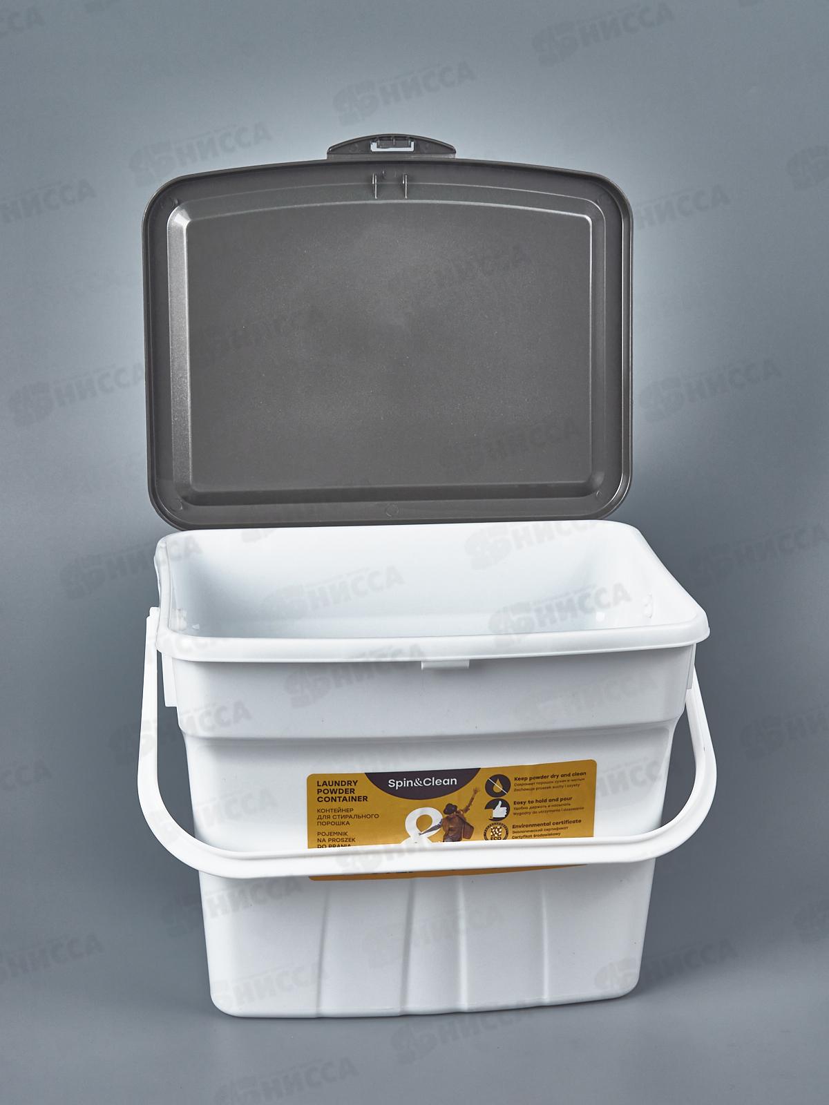 Ведро для стирального порошка 4,5л предназначенное для хранении порошка и защищает его от намокания. Крышка надежно защелкивается, удерживает запах порошка.
