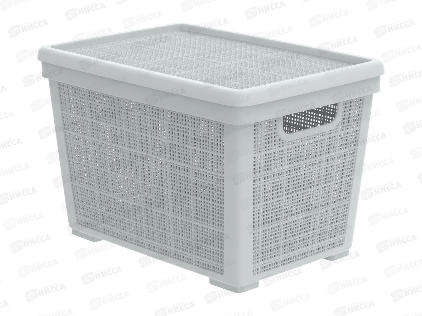 Корзина плетёная с крышкой "Лён" 22л, серый, АП 475 (400х284х264мм)