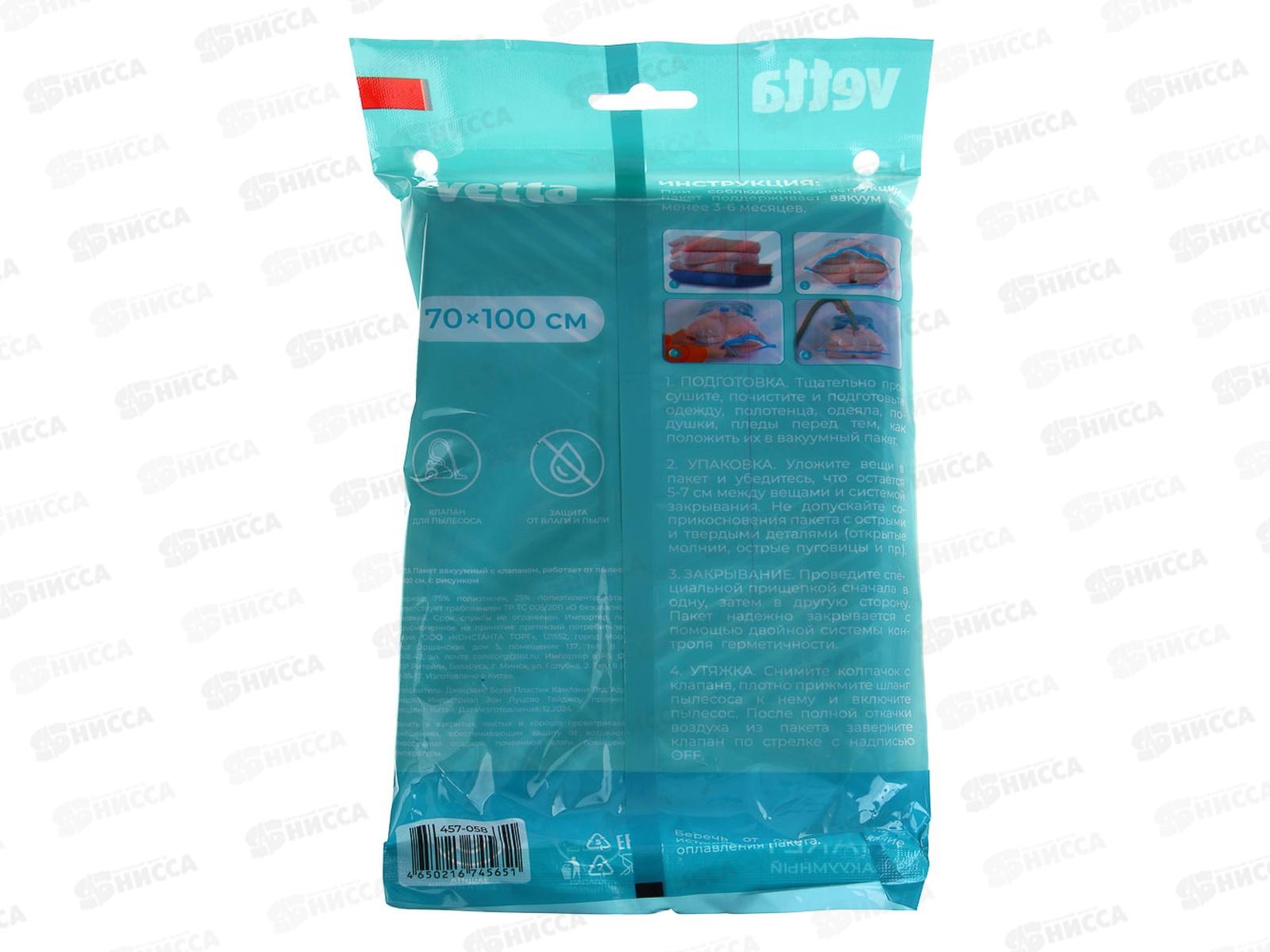 Пакет Vetta вакуумный, клапан для пылесоса 70*100см 457-058 г