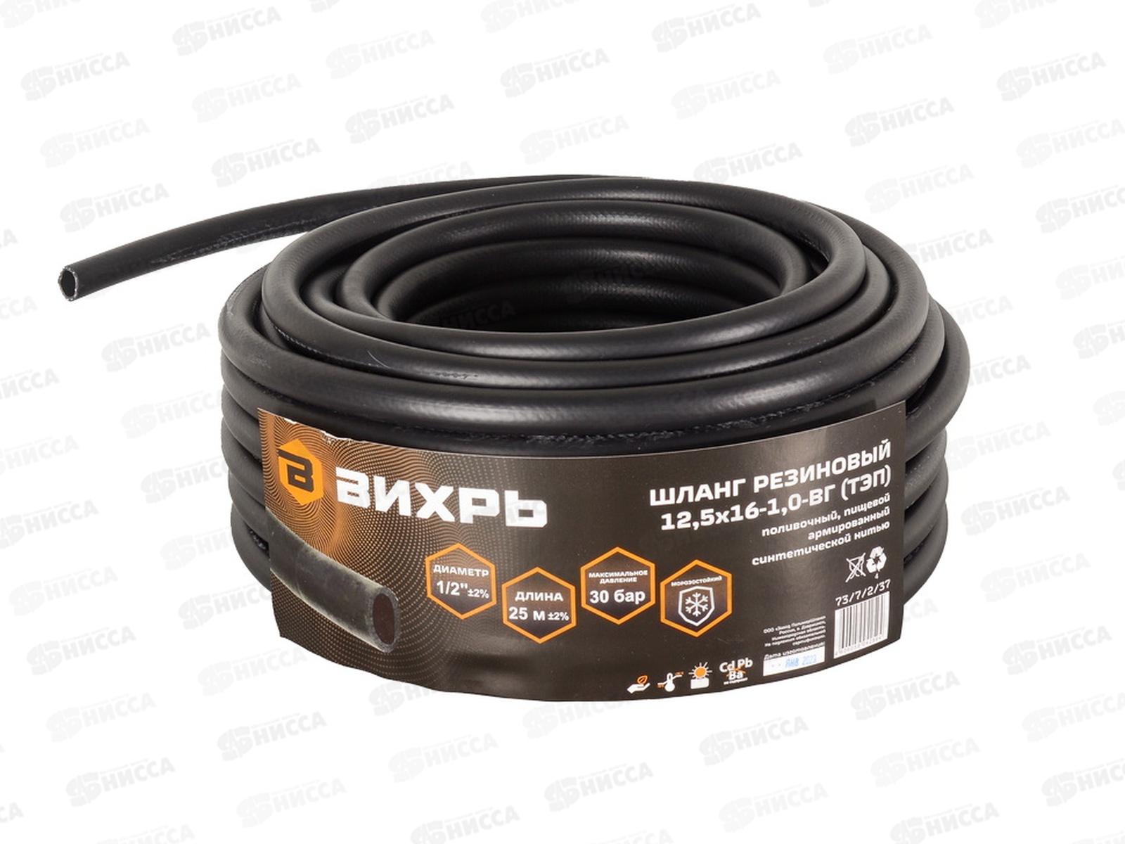 Шланг резиновый армированный, 12,5*16-1,0-ВГ, 25м, черный ТЭП Вихрь