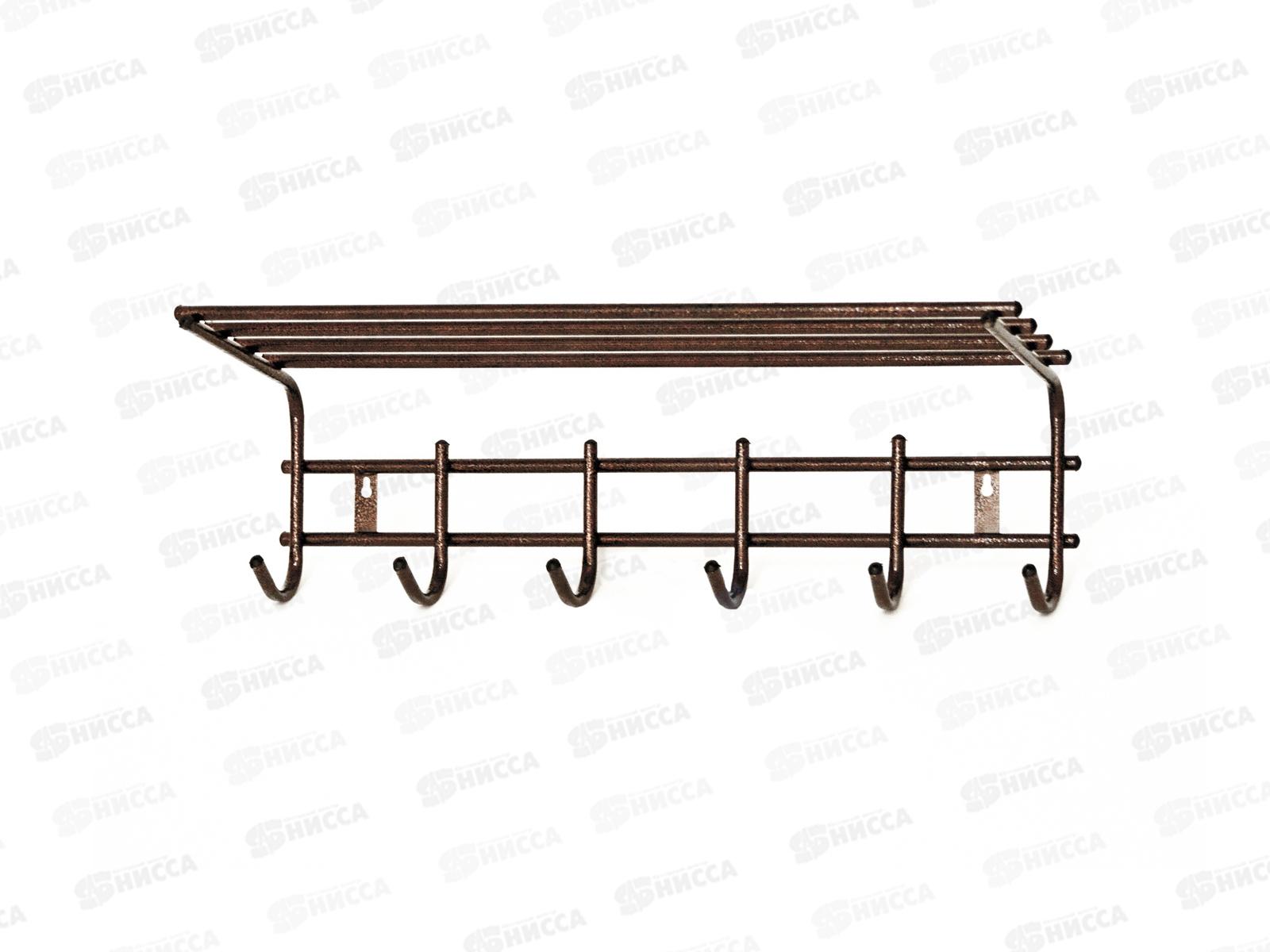 Вешалка для одежды 6 крючков с полкой антико медь 1210