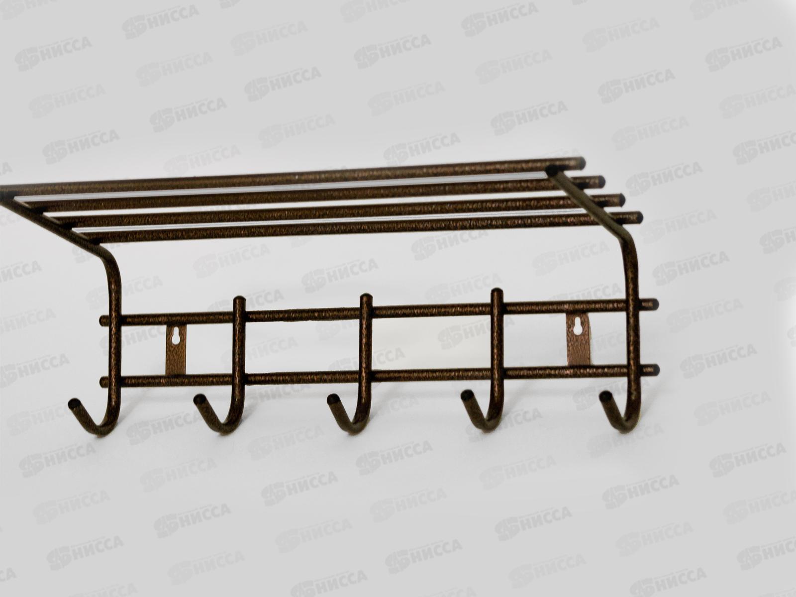 Вешалка для одежды 5 крючков с полкой антик медь 1206